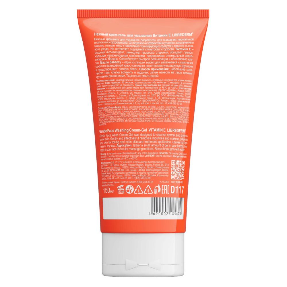 Libriderm (Либридерм) витамин е крем-гель нежный для умывания 150мл Биофармлаб ооо в Екатеринбурге