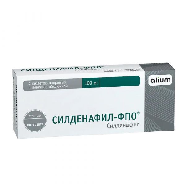 Силденафил 100мг таб.п/об.пл. №4 (Оболенское фармацевтическое предприятие ао) - цены в Екатеринбурге, купить Силденафил 100мг таб.п/об.пл. №4 в аптеке Фармленд, инструкция по применению, отзывы