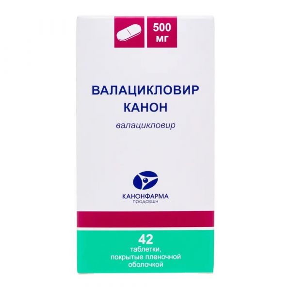 Валацикловир 500мг таб.п/об.пл. №42 по цене от 2068.81 руб в Екатеринбурге, купить Валацикловир 500мг таб.п/об.пл. №42 (Канонфарма продакшн зао) в аптеке Фармленд, инструкция по применению, отзывы