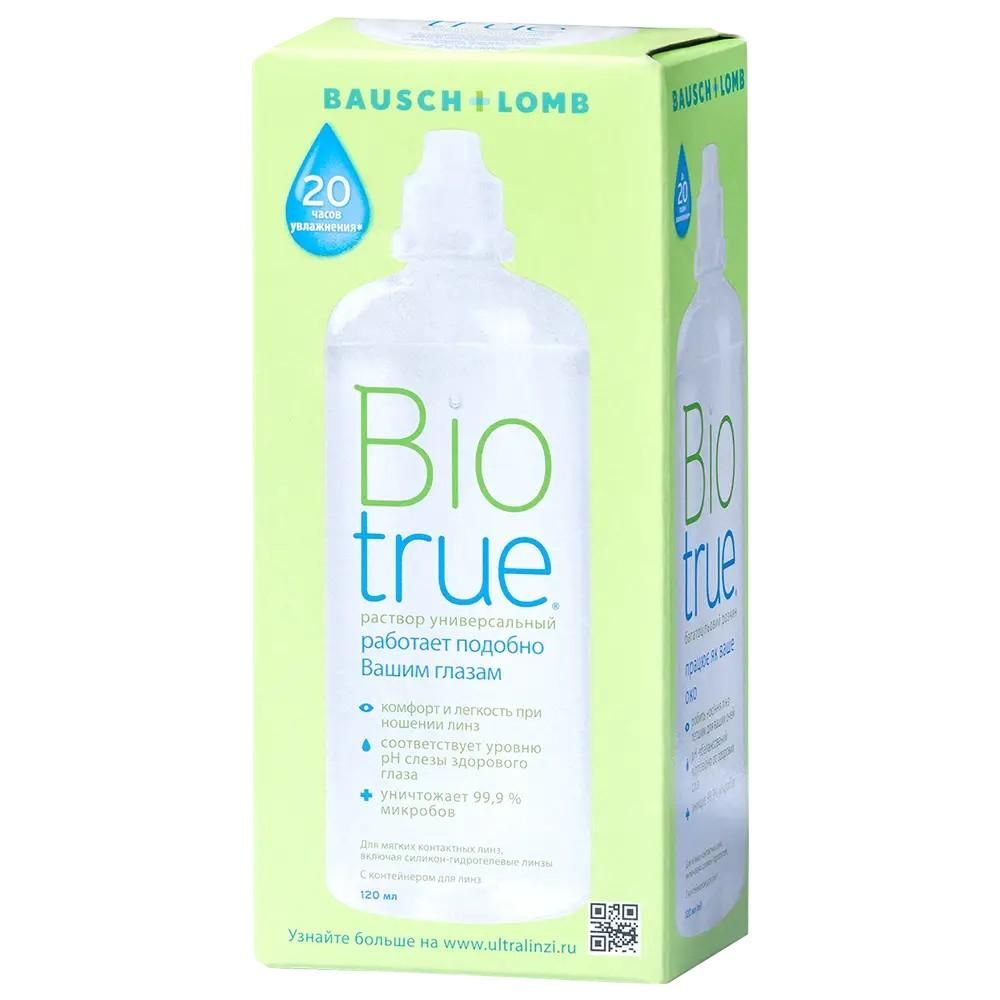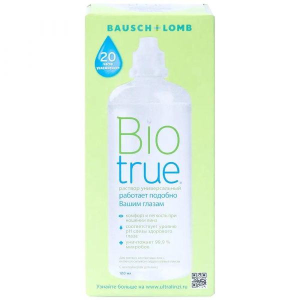 В основе универсального раствора Biotrue лежат многочисленные рекомендации специалистов и обширные научные исследования, посвященные естественным механизмам поддержания здоровья глаз. Таким образом, данный раствор по составу похож на слезную жидкость, и его воздействие ощущается именно так., Кислотно-щелочной баланс Biotrue тот же, что и у натуральной слезы, здесь содержатся те же увлажняющие и смазывающие вещества, что и в ткани самого глаза. Поэтому применение раствора препятствует распаду натуральных белков., Для здорового и комфортного ношения мы рекомендуем соблюдать ежедневный режим очистки ваших контактных линз. При этом на каждую линзу необходимо нанести по три капли раствора и потереть их круговыми движениями минимум 20 секунд. Затем надо сполоснуть каждую сторону линзы, поместить их в контейнер, заполненный новым раствором Biotrue, и оставить его минимум на четыре часа. При этом раствор в контейнере нельзя использовать повторно., Только так вы сохраните свои линзы чистыми и свежими, а ощущение комфорта не будет покидать вас ни на минуту в течение всего дня. , Время для полной очистки линз: 4 часа.