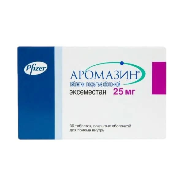 Аромазин 25мг таб.п/об. №30 по цене от 1767.00 руб в Екатеринбурге, купить Аромазин 25мг таб.п/об. №30 (Pharmacia italia s.p.a.) в аптеке Фармленд, инструкция по применению, отзывы