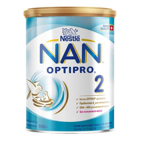 Знаете ли Вы, что белок определяет здоровье Вашего ребенка на всю жизнь? Научно доказано, что белок - один из самых важных нутриентов для роста и развития Вашего ребенка, включая формирование мозга, мышечной ткани и других органов. Качество и количество белка, который ребенок получает с пищей, поможет заложить крепкую основу его здоровья сейчас и в будущем., Правильно подобранный белок в смеси способствует становлению иммунитета и развитию пищеварительной системы, а также здоровому набору массы тела. Вот почему белки называют "кирпичиками жизни" и только с помощью белка самого высокого качества можно заложить крепкую основу для развития Вашего ребенка., NAN ® 2 OPTIPRO® - молочная смесь, предназначенная для вскармливания детей с 6 месяцев в качестве молочной составляющей рациона ребенка наряду с продуктами прикорма. Обеспечивает Вашего ребенка всеми нутриентами, необходимыми для его гармоничного физического и умственного развития., OPTIPRO® – это оптимизированный белковый комплекс, который содержится только в NAN ®. Благодаря ему ребенок получает ровно столько белка, сколько нужно для оптимального роста и развития, снижая риск перегрузки незрелых органов. Живые бифидобактерии BL помогают укрепить иммунитет Вашего малыша. DHA и ARA – две особые жирные кислоты, присутствующие в грудном молоке, играют важную роль в становлении иммунной системы малыша и способствуют развитию мозга и зрения.