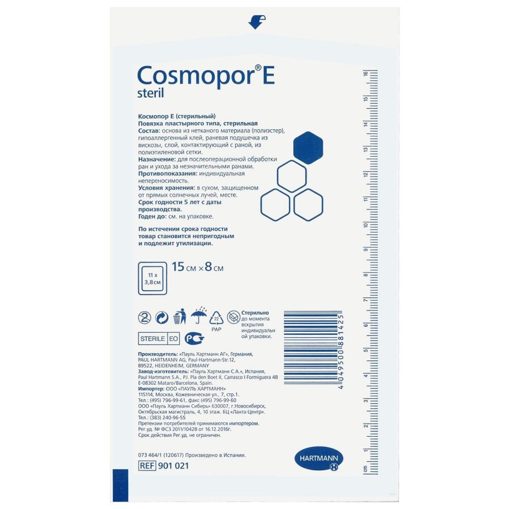 Перед применением Hartmann (хартманн) повязка космопор е стерил №1 шт. 8*15см рекомендуется изучить инструкцию.