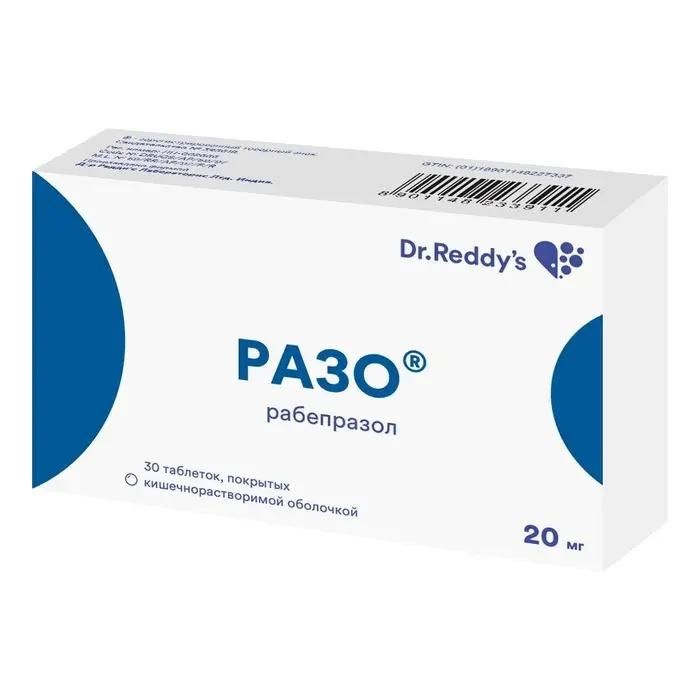 Купить Разо 20мг таб.п/об.киш/раств. №30 можно в аптеках Екатеринбурга, забронировать на сайте и в приложении