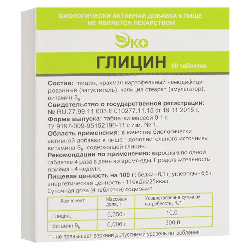 Глицин таб. №50 бад етм Экотекс ооо в Екатеринбурге