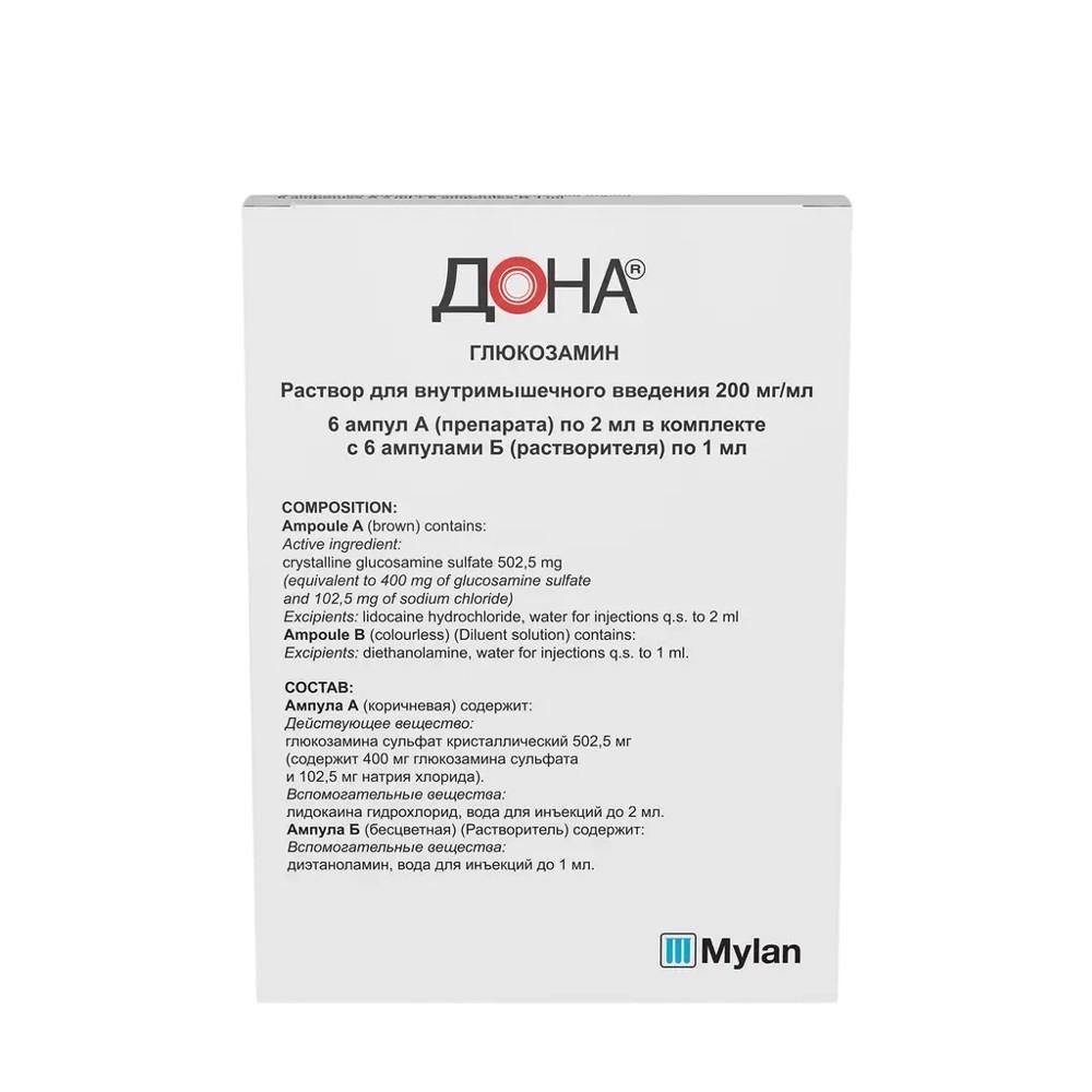 Дона 200мг/мл 2мл р-р д/ин.в/м. №6 амп. по цене от 1037.61 руб в Екатеринбурге, купить Дона 200мг/мл 2мл р-р д/ин.в/м. №6 амп. (Biologichi italia laboratories s.r.l.) в аптеке Фармленд, инструкция по применению, отзывы