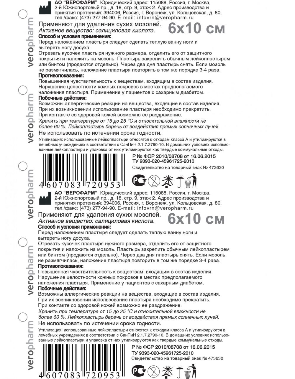 Лейкопластырь мозольный №1 шт. 6*10см Верофарм ао в Екатеринбурге