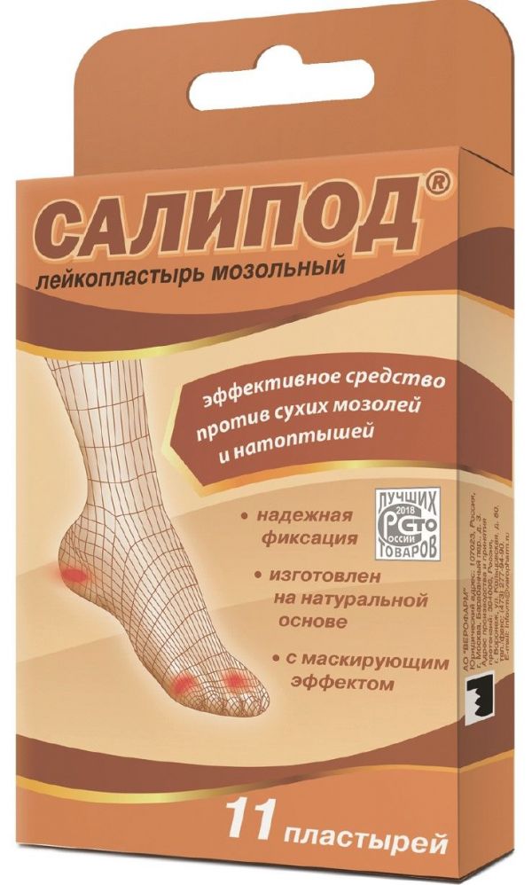 Салипод – это мозольный лейкопластырь для лечения сухих мозолей, стержневых мозолей и натоптышей. Салипод оказывает кератолитическое и антисептическое действие.