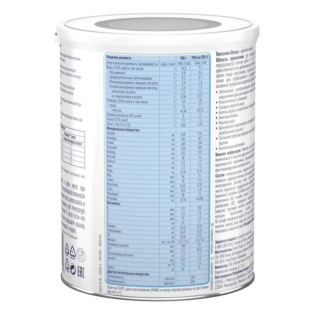 Пептамен юниор 400г смесь сух. №1 бан. ваниль по цене от 2421.10 руб в Екатеринбурге, купить Пептамен юниор 400г смесь сух. №1 бан. ваниль (Nestle swisse s.a.) в аптеке Фармленд, инструкция по применению, отзывы