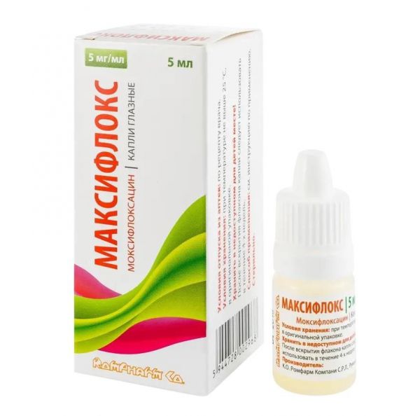 Максифлокс 5мг/мл 5мл капли глазн. №1 фл.-кап. по цене от 129.00 руб в Екатеринбурге, купить Максифлокс 5мг/мл 5мл капли глазн. №1 фл.-кап. (Rompharm company c.o. s.r.l.) в аптеке Фармленд, инструкция по применению, отзывы