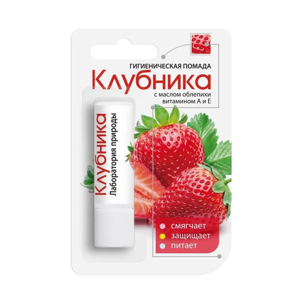Гигиеническая помада «Клубника» разработана на основе природных масел и восков с экстрактом облепихи без добавления консервантов, способствует восстановлению естественной защитной функции кожи губ., Обогащена экстрактом облепихи, который содержит бета-каротин - природный витамин А и способствует интенсивному увлажнению и здоровому состоянию кожи губ, оказывает увлажняющее, питательное и смягчающее действие на кожу губ, предупреждает сухость и шелушение, обеспечивает ей комфортное состояние.