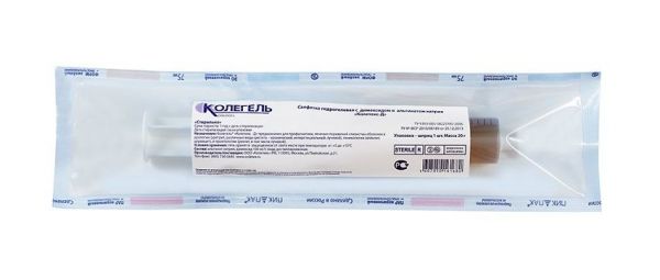 Колегель® - это новый стерильный вязкий гидрогелевый материал на основе биополимеров (альгинат, хитозан), в который введено лекарство.