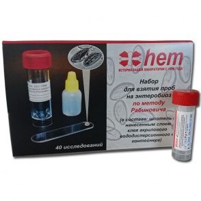 Набор для взятия проб на энтеробиоз по методу Рабиновича представляет собой альтернативу классической методике отбора материала на энтеробиоз по Рабиновичу с использованием стеклянных палочек – улучшенную модифицированную полноценную систему для отбора проб на исследование яиц гельминтов микроскопическим методом.