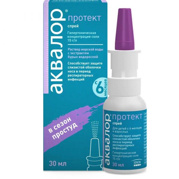 ⠀ «Аквалор протект» предназначен для поддержания физиологического состояния слизистой оболочки полости носа, которая является первым барьером на пути распространения респираторных инфекций, способствует удалению слизи, уменьшению выделений, размягчению и удалению корок, снижению риска возникновения респираторных инфекций, увлажнению слизистой оболочки полости носа., ⠀Регулярное применение средства способствует очищению слизистой оболочки полости носа от патогенных микроорганизмов (вирусных, бактериальных, грибковых), не нарушая биоценоза слизистой оболочки, и её увлажнению.
