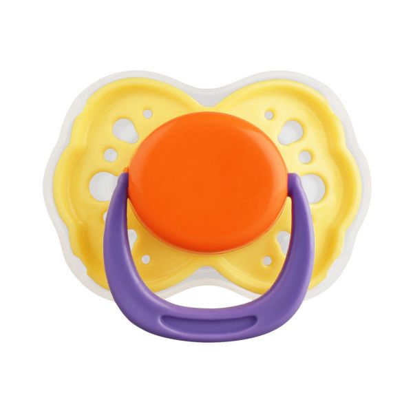 Соска-пустышка оснащена соском скошенной формы. Нагубник имеет
