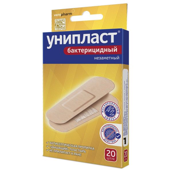 Купить Лейкопластырь унипласт бактерицидный №20 шт. незаметный 1,9*7,2см можно в аптеках Екатеринбурга, забронировать на сайте и в приложении