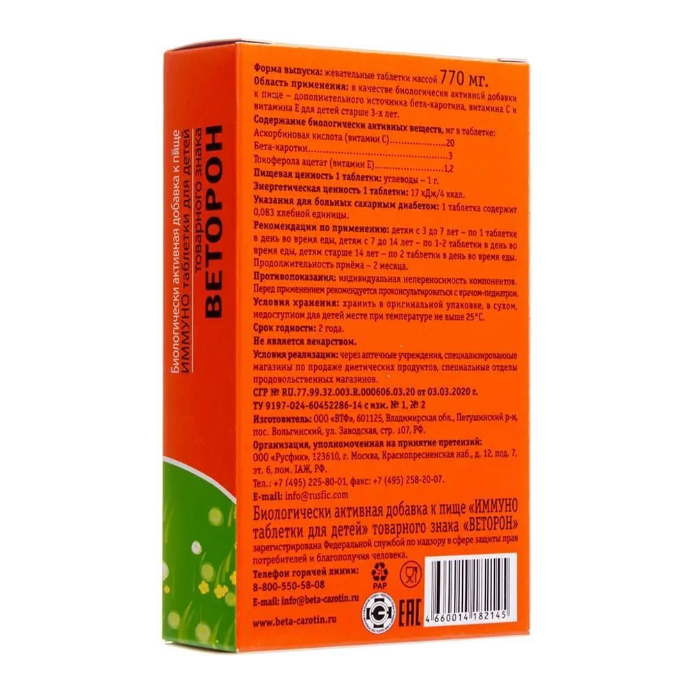 Веторон иммуно для детей таб.жев. №30 Внешторг фарма ооо (втф ооо)_3 в Екатеринбурге