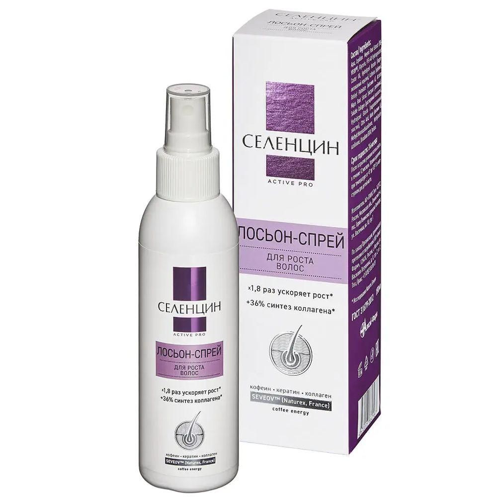 Стимулирующий лосьон-спрей Селенцин "ActivePro" — уникальный лосьон на основе французского запатентованного комплекса Seveov™ из клубней экзотического растения маки перуанской. Содержит растительные стимуляторы роста волос с клинически доказанной эффективностью действия и рекомендуется для активизации роста волос в комплексной терапии хронического, длительного выпадения волос. , Повышая клеточную активность внутри волосяных луковиц и ускоряя обменные процессы в коже головы, эффективно стимулирует рост волос, увеличивает количество волос в стадии роста, препятствует выпадению тонких пушковых волос и переводит их во взрослую здоровую фазу., Лосьон-спрей удобен и прост в применении: легко наносится, быстро высыхает, не требует смывания. При этом он не оставляет жирного блеска, не утяжеляет и не склеивает волосы.