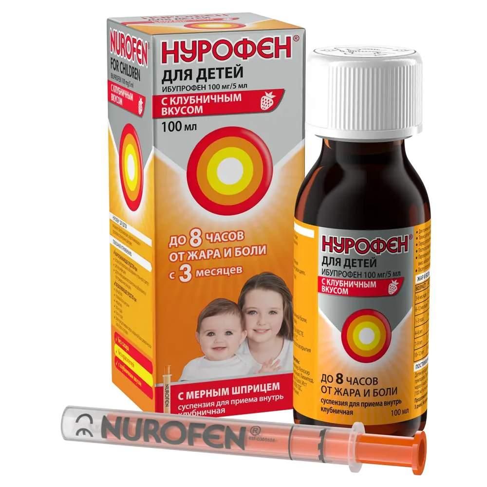 Нурофен для детей 100мг/ 5мл 100мл сусп.д/пр.внутр. №1 фл. клубника по цене от 160.25 руб в Екатеринбурге, купить Нурофен для детей 100мг/ 5мл 100мл сусп.д/пр.внутр. №1 фл. клубника (Reckitt benckiser healthcare limited_2) в аптеке Фармленд, инструкция по применению, отзывы