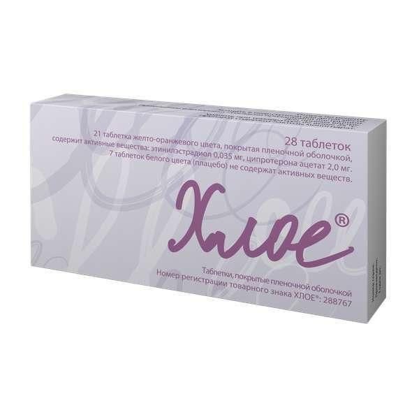 Купить Хлое 0,035мг+2мг таб.п/об.пл. №28 можно в аптеках Екатеринбурга, забронировать на сайте и в приложении