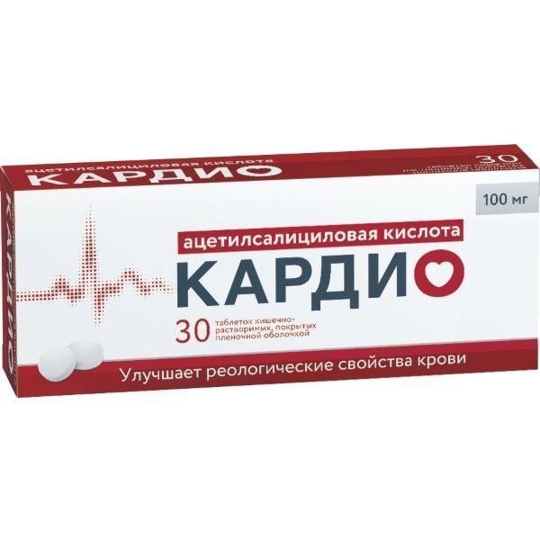 Ацетилсалициловая кислота кардио 100мг таб.п/об.киш/раств. №30