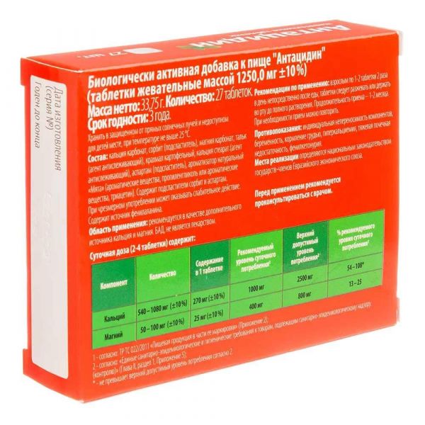 Купить Антацидин таб.жев. №27 можно в аптеках Екатеринбурга, забронировать на сайте и в приложении
