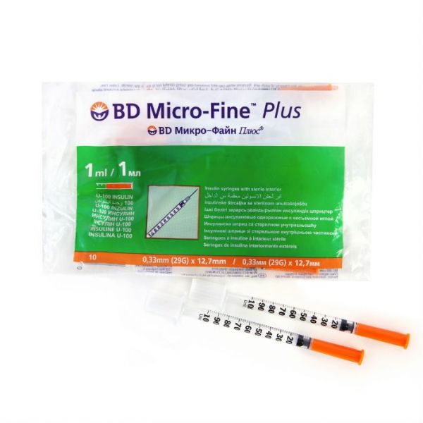 Шприц инсулиновый микро-файн плюс 1мл №10 u-100 0,33*12,7мм 29g по цене от 358.72 руб в Екатеринбурге, купить Шприц инсулиновый микро-файн плюс 1мл №10 u-100 0,33*12,7мм 29g (Becton dickinson) в аптеке Фармленд, инструкция по применению, отзывы