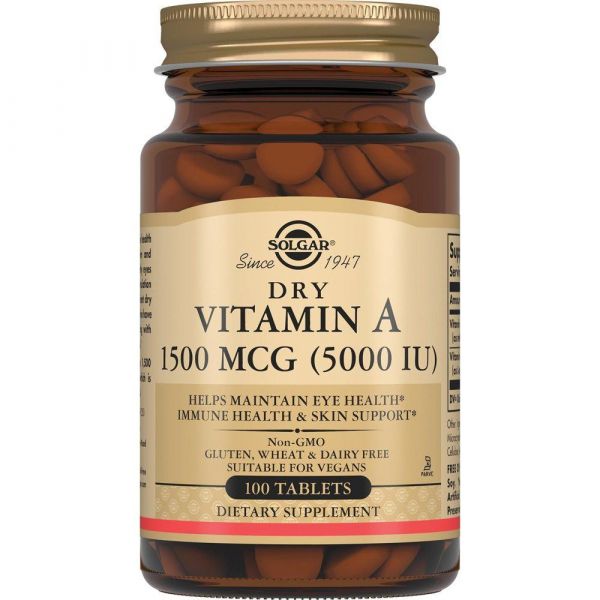 Solgar (Солгар) сухой витамин а 1500мкг 5000ме таб. №100 по цене от 1505.00 руб в Екатеринбурге, купить Solgar (Солгар) сухой витамин а 1500мкг 5000ме таб. №100 (Solgar vitamin and herb) в аптеке Фармленд, инструкция по применению, отзывы