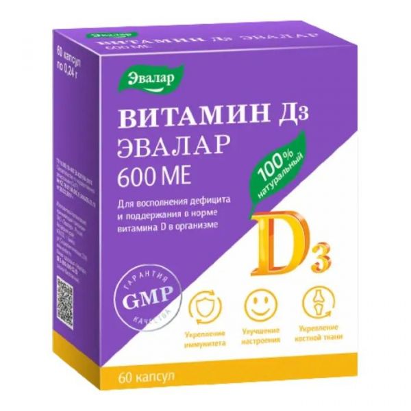 Купить Витамин д3 эвалар 600ме капс. №60 бад можно в аптеках Екатеринбурга, забронировать на сайте и в приложении