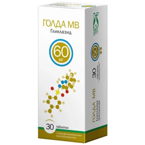 Купить Голда мв 60мг таб.модиф.высв. №30 можно в аптеках Екатеринбурга, забронировать на сайте и в приложении