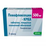 Способ применения Препарат Левофлоксацин - КРКА 250 мг или 500 мг принимают внутрь 1 или 2 раза в сутки. Таблетку следует проглатывать, не разжевывая и запивая достаточным количеством жидкости (от ½ до 1 стакана). При необходимости таблетку можно разламывать по риске. Препарат можно принимать перед едой или в любое время между приемами пищи, так как прием пищи не влияет на всасывание препарата (см. раздел «Фармакологические свойства. Фармакокинетика»). Препарат Левофлоксацин - КРКА следует принимать не менее чем через 2 ч до или через 2 ч после приема препаратов, содержащих магний и/или алюминий, железо, цинк или сукральфат (см. раздел «Взаимодействие с другими лекарственными средствами»). Учитывая, что биодоступность левофлоксацина при приеме препарата Левофлоксацин - КРКА в таблетках равна 99-100 % то, в случае перевода пациента с внутривенной инфузии левофлоксацина на прием таблеток следует продолжить лечение в той же дозе, которая применялась при внутривенной инфузии (см. раздел «Фармакологические свойства. Фармакокинетика»). Пропуск приема одной или нескольких доз препарата Если случайно пропущен прием препарата, то надо как можно скорее принять очередную дозу и далее продолжить прием препарата Левофлоксацин - КРКА согласно рекомендованному режиму дозирования. Дозы и продолжительность лечения Режим дозирования определяется характером и тяжестью инфекции, а также чувствительностью предполагаемого возбудителя. Продолжительность лечения варьирует в зависимости от течения заболевания. Рекомендуемый режим дозирования и продолжительность лечения у пациентов с нормальной функцией почек (КК > 50 мл/мин) - Осложненные инфекции мочевыводящих путей: по 2 таблетки 250 мг 1 раз в сутки или по 1 таблетке 500 мг 1 раз в сутки (соответственно по 500 мг левофлоксацина) – 7-14 дней. - Пиелонефрит: по 2 таблетки 250 мг 1 раз в сутки или по 1 таблетке 500 мг 1 раз в сутки (соответственно по 500 мг левофлоксацина) – 7-10 дней. - Хронический бактериальный простатит: по 2 таблетки 250 мг или по 1 таблетке 500 мг 1 раз в сутки (соответственно по 500 мг левофлоксацина) – 28 дней. - Комплексное лечение лекарственно-устойчивых форм туберкулеза: по 1 таблетке 500 мг 1-2 раза в сутки (соответственно по 500-1000 мг левофлоксацина) – до 3-х месяцев. - Профилактика и лечение сибирской язвы при воздушно-капельном пути заражения: по 2 таблетки 250 мг или по 1 таблетке (соответственно по 500 мг левофлоксацина) 1 раз в сутки до 8 недель. - Внебольничная пневмония: по 2 таблетки 250 мг или по 1 таблетке 500 мг 1-2 раза в сутки (соответственно по 500-1000 мг левофлоксацина) – 7-14 дней. - Осложненные инфекции кожных покровов и мягких тканей: по 2 таблетки 250 мг или по 1 таблетке 500 мг 1-2 раза в сутки (соответственно по 500-1000 мг левофлоксацина) – 7-14 дней. - Острый бактериальный синусит: по 2 таблетки 250 мг или по 1 таблетке 500 мг 1 раз в сутки (соответственно по 500 мг левофлоксацина) – 10-14 дней. - Обострение хронического бронхита: по 2 таблетки 250 мг или по 1 таблетке 500 мг 1 раз в сутки (соответственно по 500 мг левофлоксацина) – 7-10 дней. - Неосложненный цистит: по 1 таблетке 250 мг 1 раз в сутки (соответственно по 250 мг левофлоксацина) – 3 дня. Режим дозирования у пациентов с нарушением функции почек (КК ≤ 50 мл/мин) Левофлоксацин выводится преимущественно почками, поэтому при лечении пациентов с нарушением функции почек требуется снижение дозы пр
