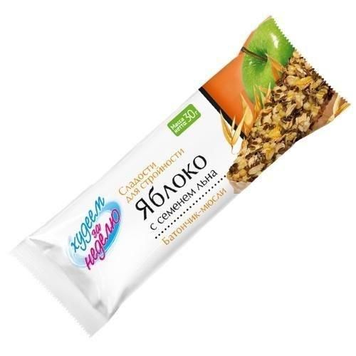 Батончик-мюсли с яблоком и семенем льна "Худеем за неделю" поможет сломать стереотипы, что похудеть можно, только ограничив себя в сладком.