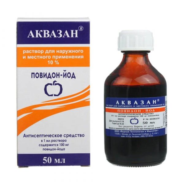Аквазан 10% 50мл р-р д/пр.местн. наружн. №1 фл.стекл.темн. Йодные технологии и маркетинг ооо в Екатеринбурге