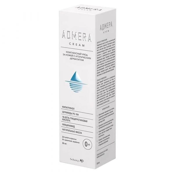 АДМЕРА® - КРЕМ ДЛЯ УХОДА ЗА СУХОЙ И ЧУВСТВИТЕЛЬНОЙ КОЖЕЙ ЛИЦА И ТЕЛА ДЛЯ ДЕТЕЙ 0+ И ВЗРОСЛЫХ, КОМПЛЕКСНЫЙ УХОД ЗА КОЖЕЙ ПРИ АТОПИЧЕСКИМ ДЕРМАТИТЕ, ЧТО ТАКОЕ КОЖА? , КОЖА — ЭТО САМЫЙ БОЛЬШОЙ ОРГАН ЧЕЛОВЕЧЕСКОГО ТЕЛА. Она выполняет множество функций и одна из важнейших - защитная. Наружный слой - это эпидермис, его толщина составляет около 2,5 мм. Можно сказать, что неповрежденный эпидермис представляет собой неприступную крепость человеческого организма, через которую не могут проникнуть патогенные микробы, токсины и аллергены. Важную роль в защите играет самый верхний слой эпидермиса - роговой, который состоит из клеток – корнеоцитов и липидной прослойки между ними. Именно роговой слой вместе с кислотно-гидролипидной мантией на поверхности кожи формируют защитный кожный барьер, который делает кожу непроницаемой для внешних раздражителей и способствует удержанию в ней влаги., СОСТОЯНИЕ КОЖИ ЗАВИСИТ ОТ ГЕНЕТИЧЕСКИХ ОСОБЕННОСТЕЙ, ВОЗРАСТА, ПИТАНИЯ И ОБРАЗА ЖИЗНИ., Одно из наиболее распространённых состояний кожи - сухость или ксероз. Она проявляется шелушением, мелкими трещинками, чувством стягивания, жжения и зудом. Сухость кожи может быть, как временным явлением, так и хроническим состоянием, в том числе наследственным., Существует много причин, вызывающих сухость кожи: от воздействия факторов окружающей среды и неправильного ухода за кожей до дерматологических заболеваний. , И в этом ряду атопический дерматит занимает, пожалуй, первое место. Если раньше главной причиной развития атопического дерматита считалась аллергия, то сейчас основная роль отводится нарушению защитного барьера кожи, часто обусловленному генетическими факторами., Атопический дерматит встречается у 20% детей и 3% взрослых. Начинается обычно в раннем детском возрасте, проявляется сухостью кожи, зудом, а в периоды обострения — возникновением воспалительных очагов. Заболевание существенно влияет на качество жизни человека, а если это ребенок, то и всей семьи. Если обострение необходимо ликвидировать лекарственными средствами, то уход за кожей с использованием эмолентов следует осуществлять постоянно., ЧТО ПРОИСХОДИТ С КОЖЕЙ ПРИ АТОПИЧЕСКОМ ДЕРМАТИТЕ?, Одним из важнейших доказанных причинных факторов развития атопического дерматита является мутация гена филаггрина. При атопическом дерматите она встречается практически у каждого второго. , ФИЛАГГРИН — важнейший структурный белок эпидермиса, отвечающий за формирование защитного кожного барьера. Связывая нити кератина, он способствует правильному формированию структуры рогового слоя. Аминокислоты, образующиеся при распаде филаггрина, составляют основу натурального увлажняющего фактора кожи, который удерживает влагу в коже, а кислые продукты метаболизма поддерживают слабо кислый pH, дополнительно защищающий кожу от патогенных микроорганизмов. , Мутация гена филаггрина обусловливает потерю его основной функции и, как следствие, нарушение защитного барьера кожи. Кожа становится сухой, появляются микротрещины, через которые легко проникают аллергены и патогенные микроорганизмы., Важно отметить, что синтез филаггрина может угнетаться при атопическом дерматите не только на фоне наследственных мутаций, но и даже при их отсутствии. Этому способствуют факторы внешней среды, сам воспалительный про