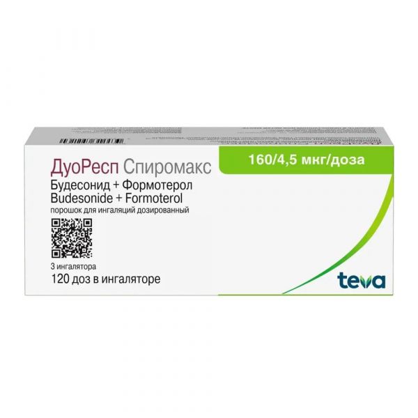 Перед применением Дуоресп спиромакс 160мкг+4,5мкг/доза 120доз пор.д/инг.доз. №3 ингалятор доз. рекомендуется изучить инструкцию.