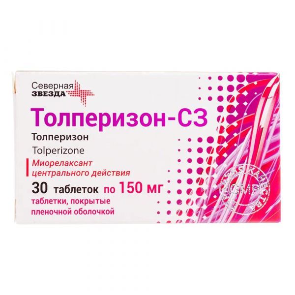 Толперизон 150мг таб.п/об.пл. №30 по цене от 223.85 руб в Екатеринбурге, купить Толперизон 150мг таб.п/об.пл. №30 (Северная звезда нао) в аптеке Фармленд, инструкция по применению, отзывы