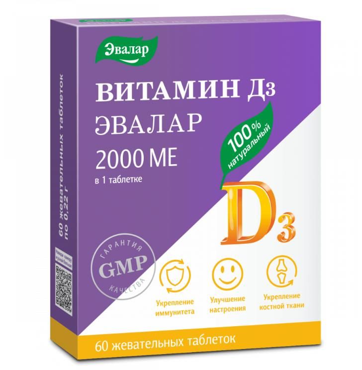 Витамин д3 2000ме таб.жев. №60 Эвалар зао в Екатеринбурге