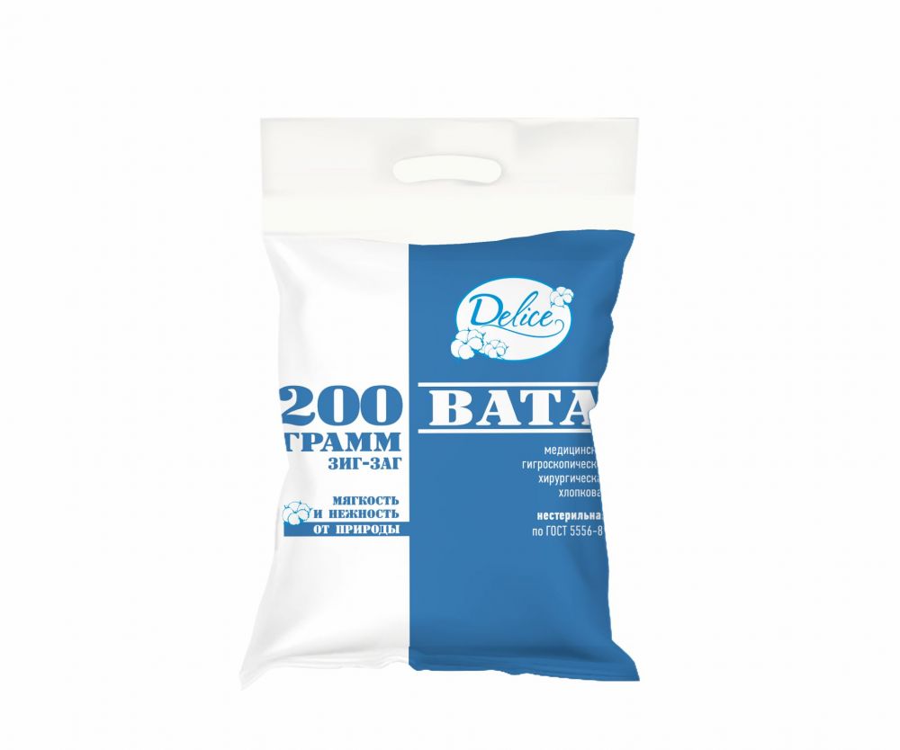 Delice (Делис) вата хирургическая нестерильная 200г зиг-заг Емельянъ савостинъ. ватная фабрика ооо в Екатеринбурге