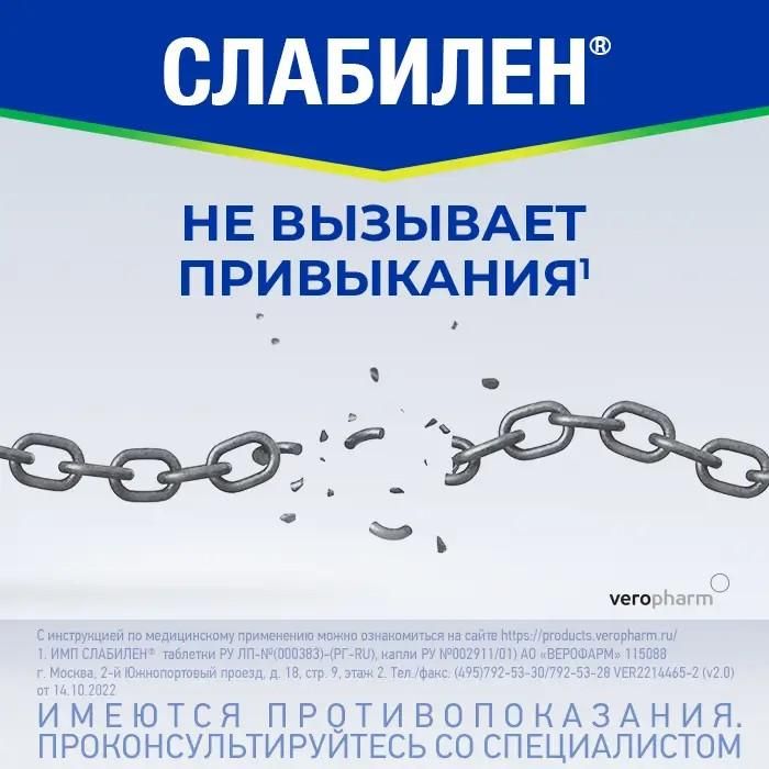 Слабилен® — популярный слабительный препарат с предсказуемым действием и по доступной цене., Слабилен выбирают потому что он обладает:, • Предсказуемым действием на утро, при приеме вечером, - действие через 10-12 часов, • Удобной формой, - в форме таблетки и капли, • Мягким действием, - не всасывается, не препятствует усвоению питательных веществ, • Доступной ценой, Слабилен. Знаешь, что будет завтра!