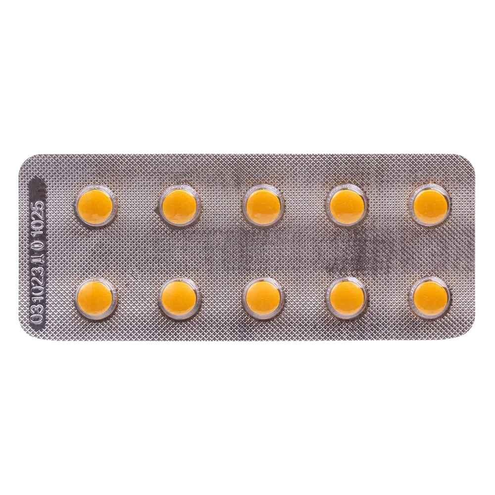 Таблетки, покрытые пленочной оболочкой желтого или желтого со слабым оранжевым оттенком цвета, круглые, двояковыпуклые; на поперечном разрезе - внутренний слой белого или почти белого цвета.
