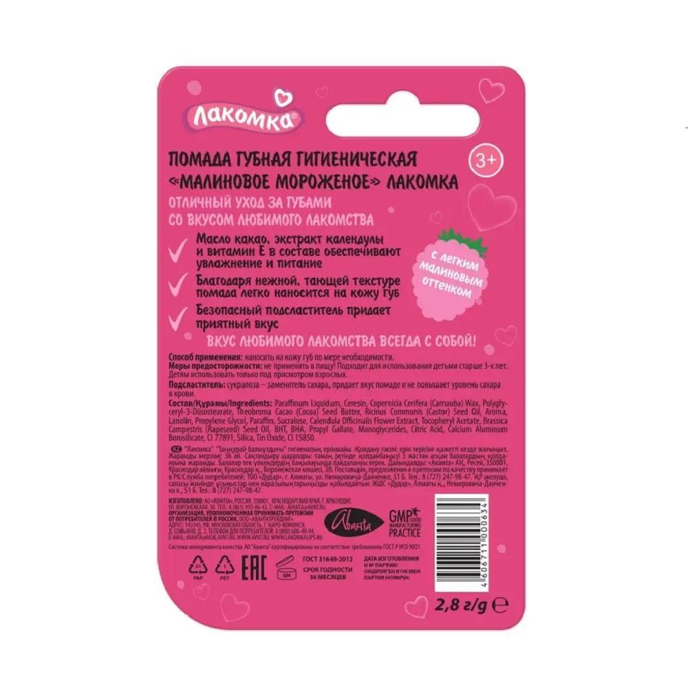 Лакомка помада гигиеническая 2,8г малиновое мороженое Аванта оао в Екатеринбурге