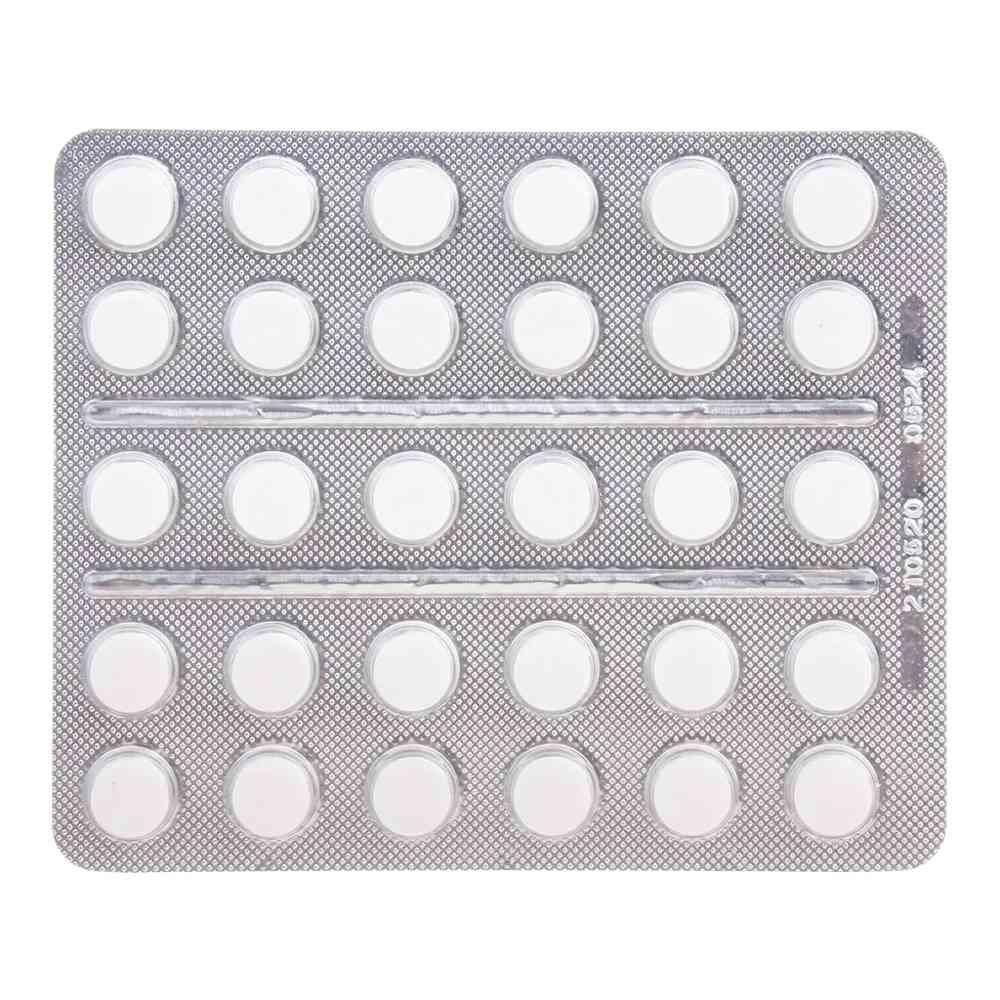 Круглые плоскоцилиндрические таблетки белого или почти белого цвета с риской и фаской. Допускается легкая мраморность.