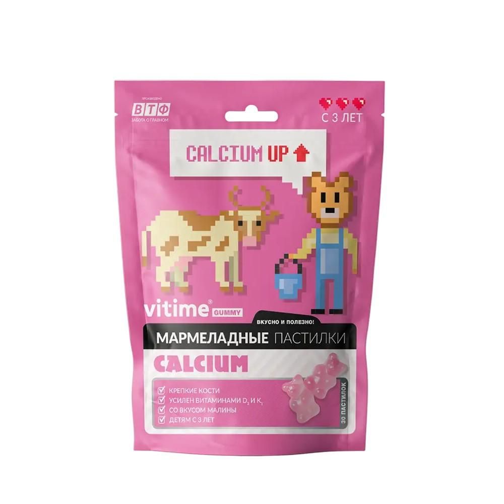 VITIME Кальций + D3 / ВИТАЙМ Кальций + Д3 мармеладные пастилки, Комплекс кальция и витаминов D3 и К1 для правильного роста и формирования костей и зубов у детей., По статистике, у каждого третьего ребенка – дефицит кальция, так как продукты питания содержат недостаточно этого микроэлемента. Поэтому кальций необходимо принимать дополнительно., В составе VITime® Мармеладные пастилки CALCIUM:, • кальций, который составляет основу костной ткани;, • витамин D3, повышающий прочность костей и зубов;, • витамин K1, который улучшает усвоение кальция и витамина D3., Преимущества, • Витамин К1 – для лучшего усвоения кальция., • Без ГМО, искусственных красителей и ароматизаторов., • Мармеладные пастилки на основе натурального сока., • Со вкусом малины., Компоненты комплекса будут полезны:, • для нормального развития скелета у детей и подростков;, • для формирования зубов и повышения их прочности;, • в целях восполнения недостатка кальция в рационе.