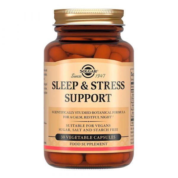 Натуральные растительные компоненты для высокого качества сна, Стресс – это естественная сторона жизни, но избыток негативного стресса может причинить серьезный вред здоровью. Напряжение из-за необходимости разрываться между работой, семейным распорядком, домашними делами, заботой о здоровье, финансах – все это может отразиться на качестве сна и хорошем самочувствии., Вместо того, чтобы ворочаться всю ночь, обратитесь к Solgar «Сон и ночной стресс контроль»., Разработанный экспертами Solgar уникальный ночной комплекс без мелатонина на растительной основе, для защиты от стресса и улучшения качества сна, содержит клинически изученную растительную смесь трав, витамин B6 и аминокислоту L-теанин в биодоступной форме., Экстракт валерианы лекарственной помогает снизить беспокойство и раздражительность, экстракт пассифлоры инкарнантной способствует снижению тревожности и улучшению засыпания, экстракт шишек хмеля повышает качество сна, чтобы утром вы себя чувствовали отдохнувшим., L-теанин, полученный из листьев зеленого чая, способствует расслаблению, улучшению засыпания и продолжительности сна. А также повышению стрессоустойчивости, концентрации внимания, памяти и хорошему настроению в течение дня., Витамин В6 необходим для поддержки здоровья нервной системы и энергии, играет важную роль в выработке гормона сна мелатонина., Для профилактики нервного перенапряжения и повышения стрессоустойчивости в течение дня рекомендуем сочетать «Сон и ночной стресс-контроль» с такими продуктами, как «Цитрат магния» и «Дневной стресс-контроль».