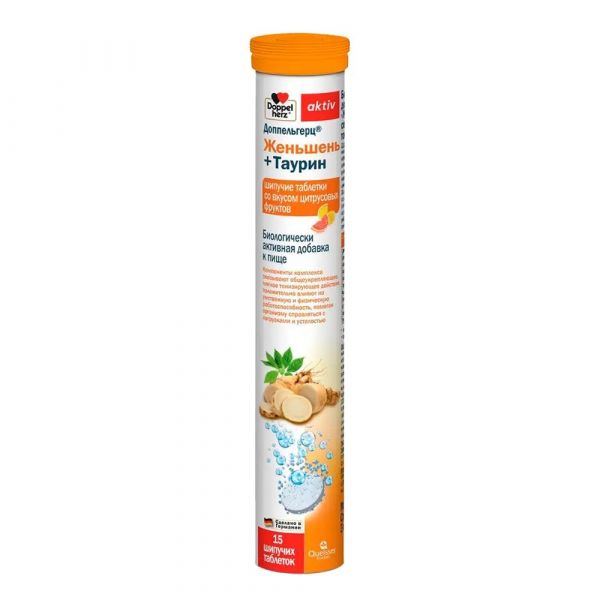Доппельгерц актив женьшень+таурин таб.шип. №15 цитрус Queisser pharma gmbh & co. kg в Екатеринбурге