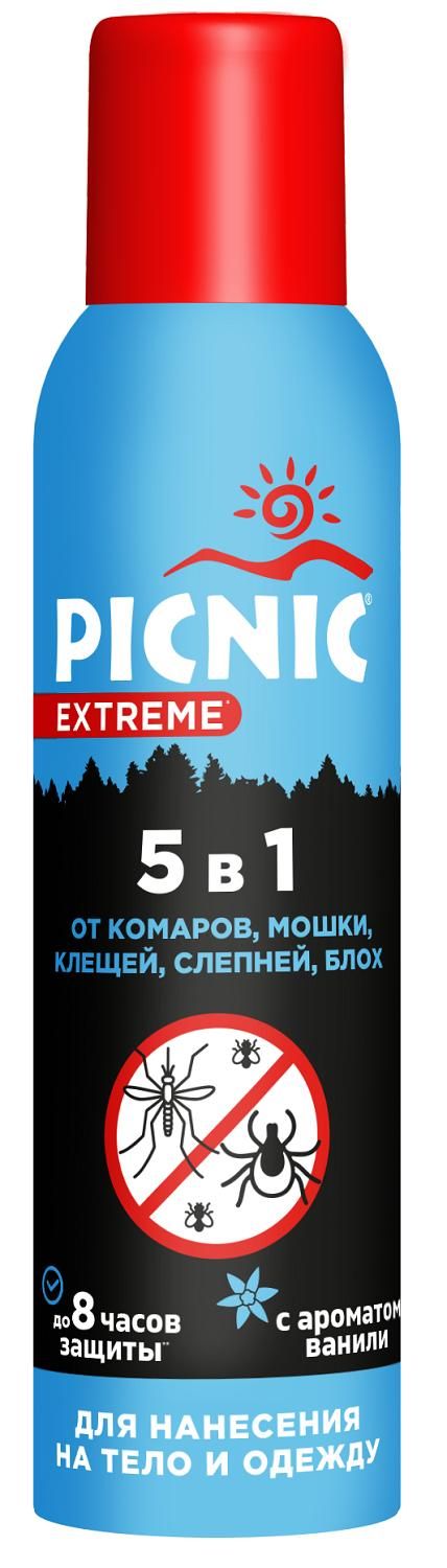 Picnic (Пикник) экстрим аэрозоль 5в1 150мл от комаров, мошки, клещей, слепней, блох Аэрозоль ооо в Екатеринбурге