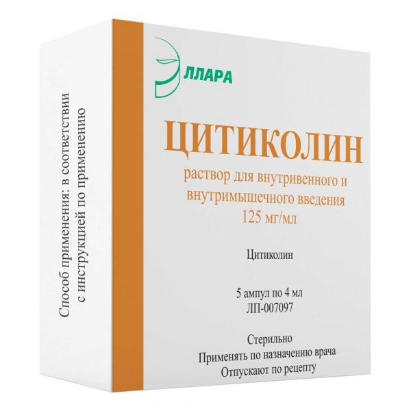 Цитиколин 125мг/мл 4мл р-р д/ин.в/в.,в/м. №5 Эллара ооо в Екатеринбурге