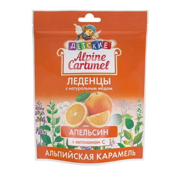Альпийская карамель 75г леденцы детские витамин с мед апельсин