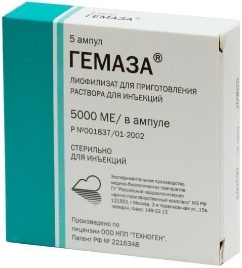 Гемаза 5000ме 2мл лиоф.д/р-ра д/ин.в/в. №5 амп. Фгбу нмиц кардиологии минздрава россии в Екатеринбурге