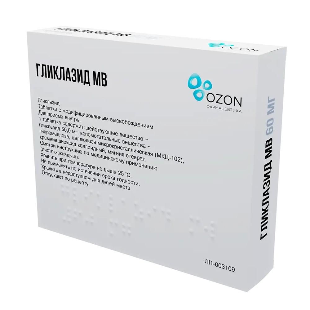 Гликлазид мв 60мг таб.п/об.модиф.высв. №30 по цене от 230.00 руб в Екатеринбурге, купить Гликлазид мв 60мг таб.п/об.модиф.высв. №30 (Озон фарм ооо) в аптеке Фармленд, инструкция по применению, отзывы
